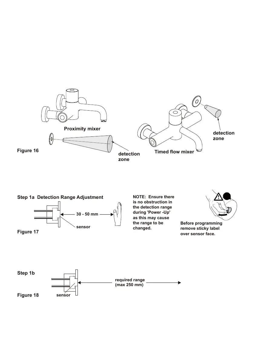 If an error is made in programming the detection range, it is necessary to start again from Step 1a.