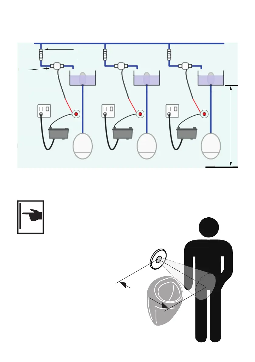 Example above of a urinal installation where PSUs are all mains versions.Flushing is via auto cisterns.