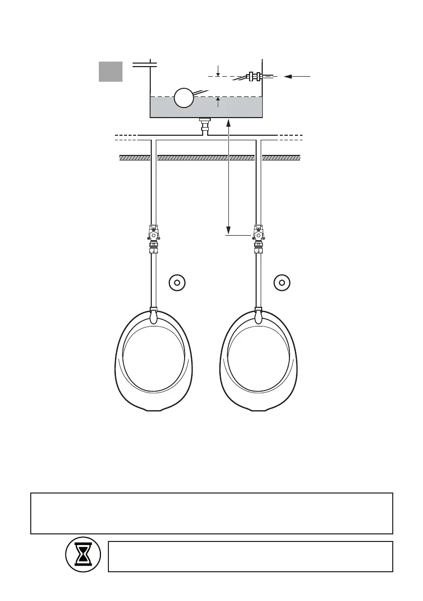 3. A storage tank installed at least 2M above the solenoid valve can be used to ush a standard urinal
