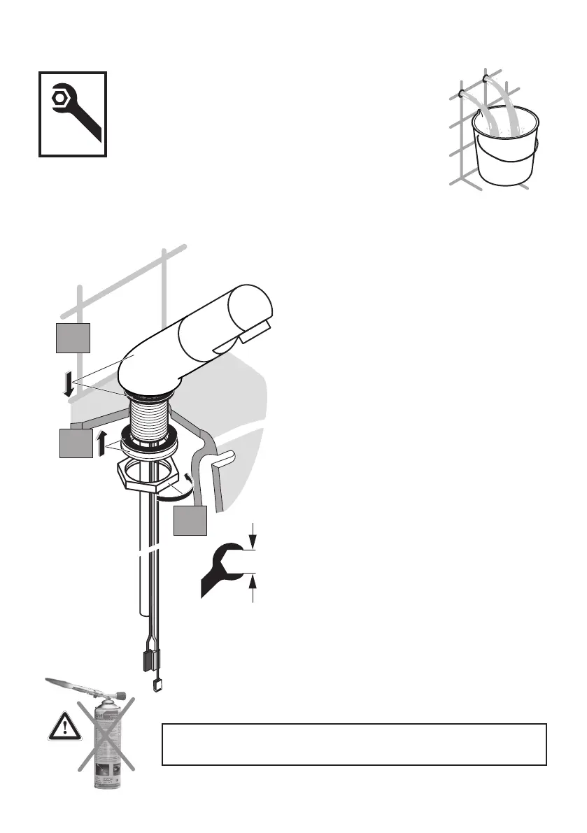 1. Remove the spout mounting kit if already assembled to the spout tail. Ensure the basin rubber washer