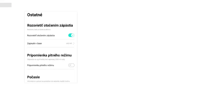 • Prejdením po displeji sprava doľava zobrazíte základné