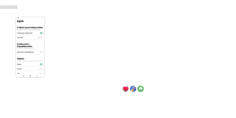 Telefon, Alvás, Pulzus, Napi áttekintés, Sport, Vérnyomás, SpO2,