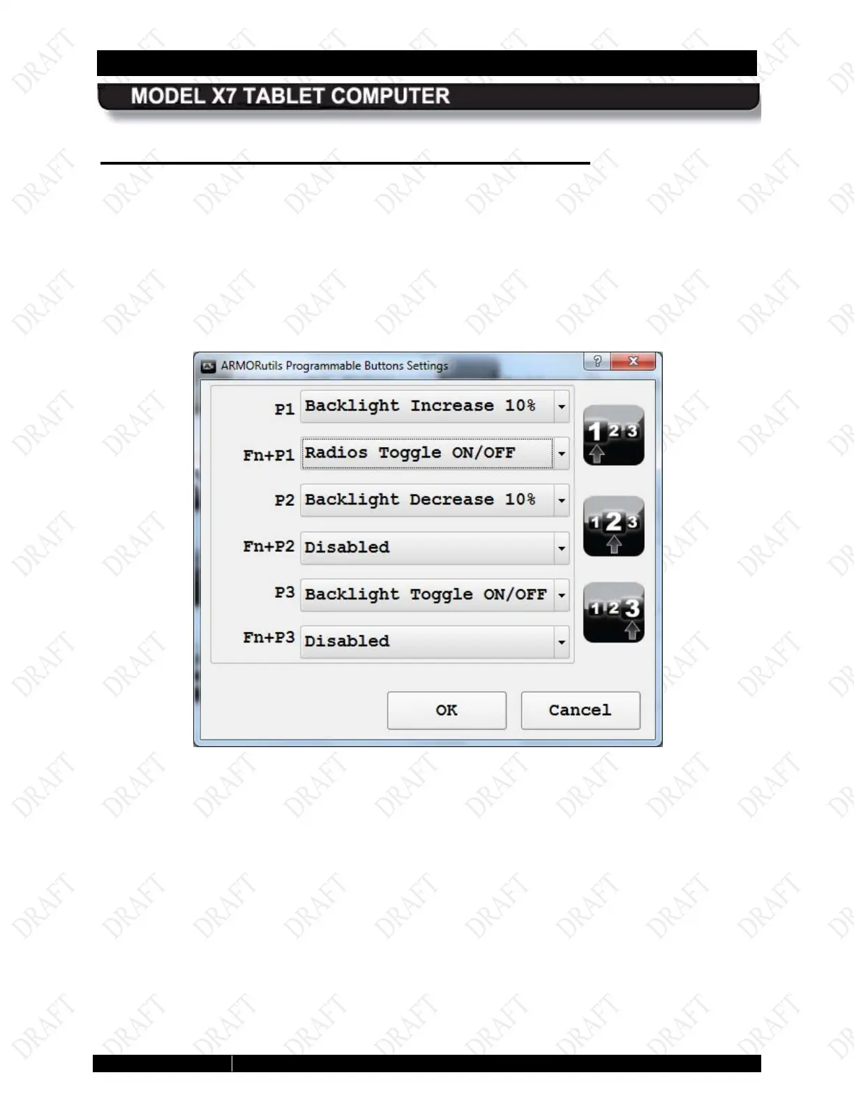 Fn button and then pressing and releasing one of the programmable buttons (Fn+P1, P2, P3).