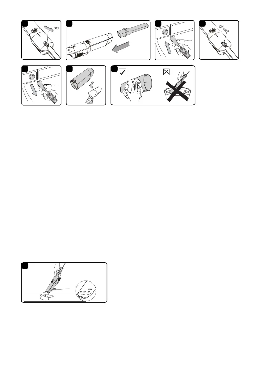 5. Après utilisation, mettez l'aspirateur hors tension, puis débranchez la che d'alimentation de la prise