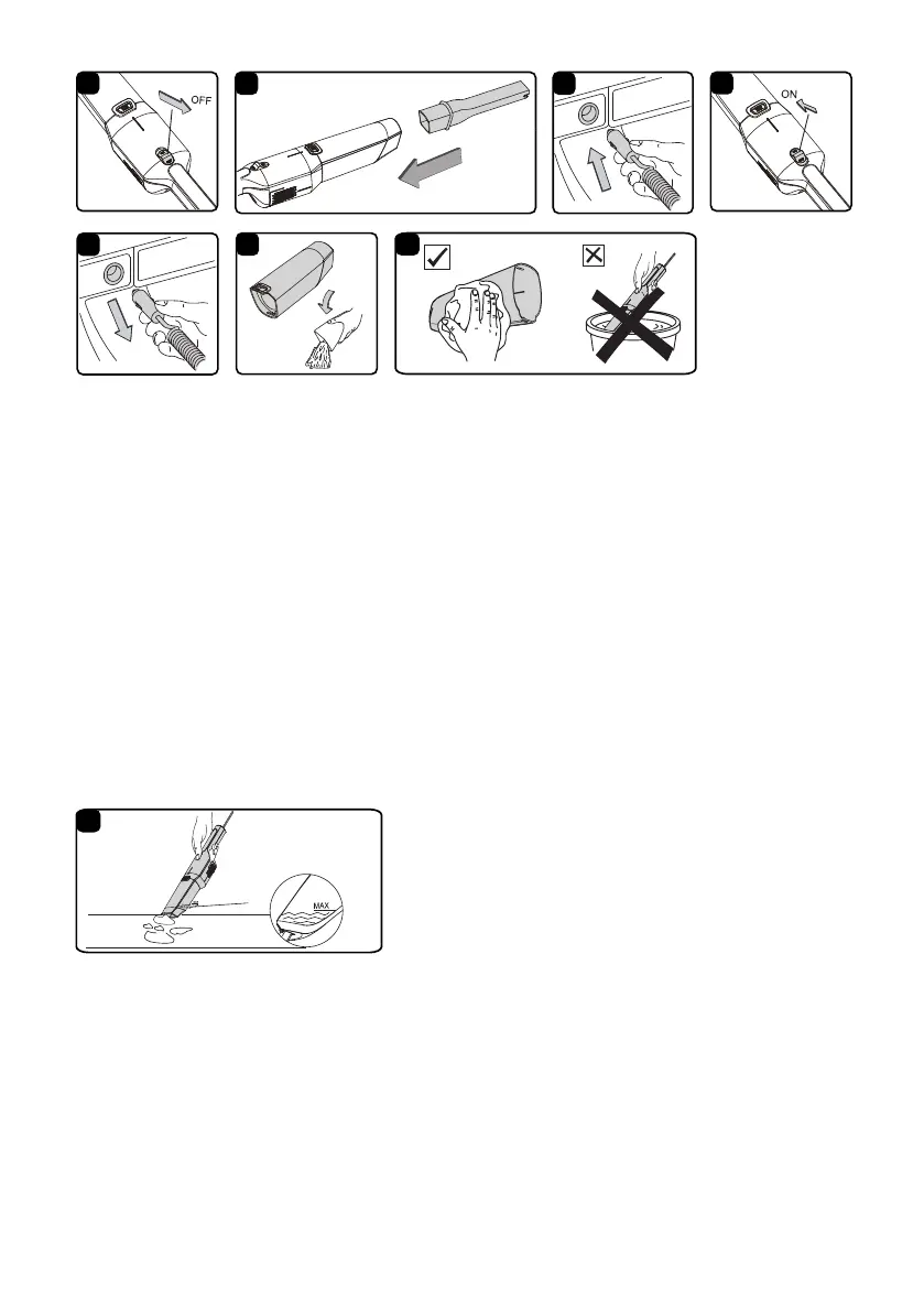 STOP vacuuming if the liquid in the dust cup reaches the "MAX" indicator line on the dust cup (Fig. 8).