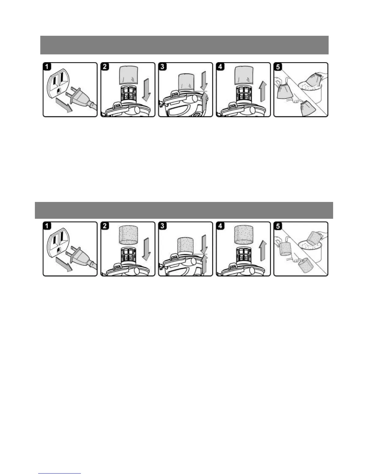 2. Remove power head and place in upside down position. Follow instructions to remove cloth filter.