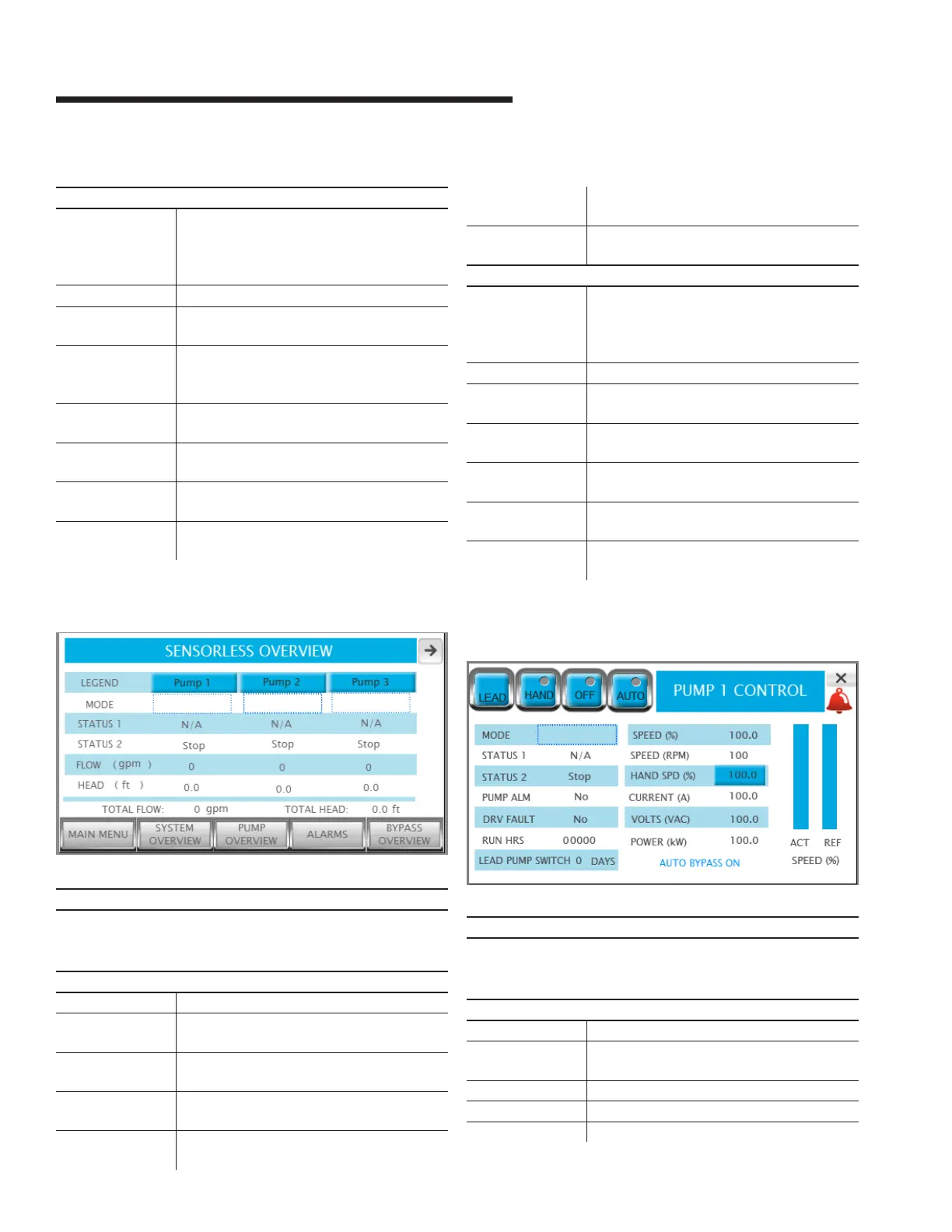 Pump 1 to 6 mode Shows each pump mode: Hand, O or Auto