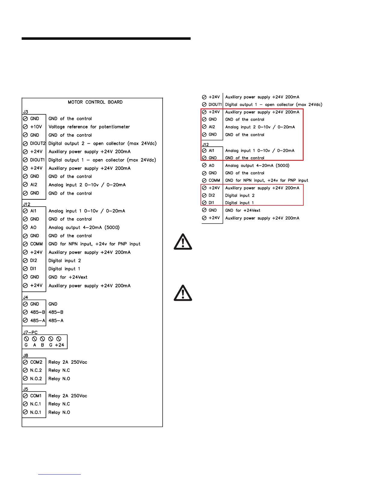 start/stop digital input must be used (mains voltage