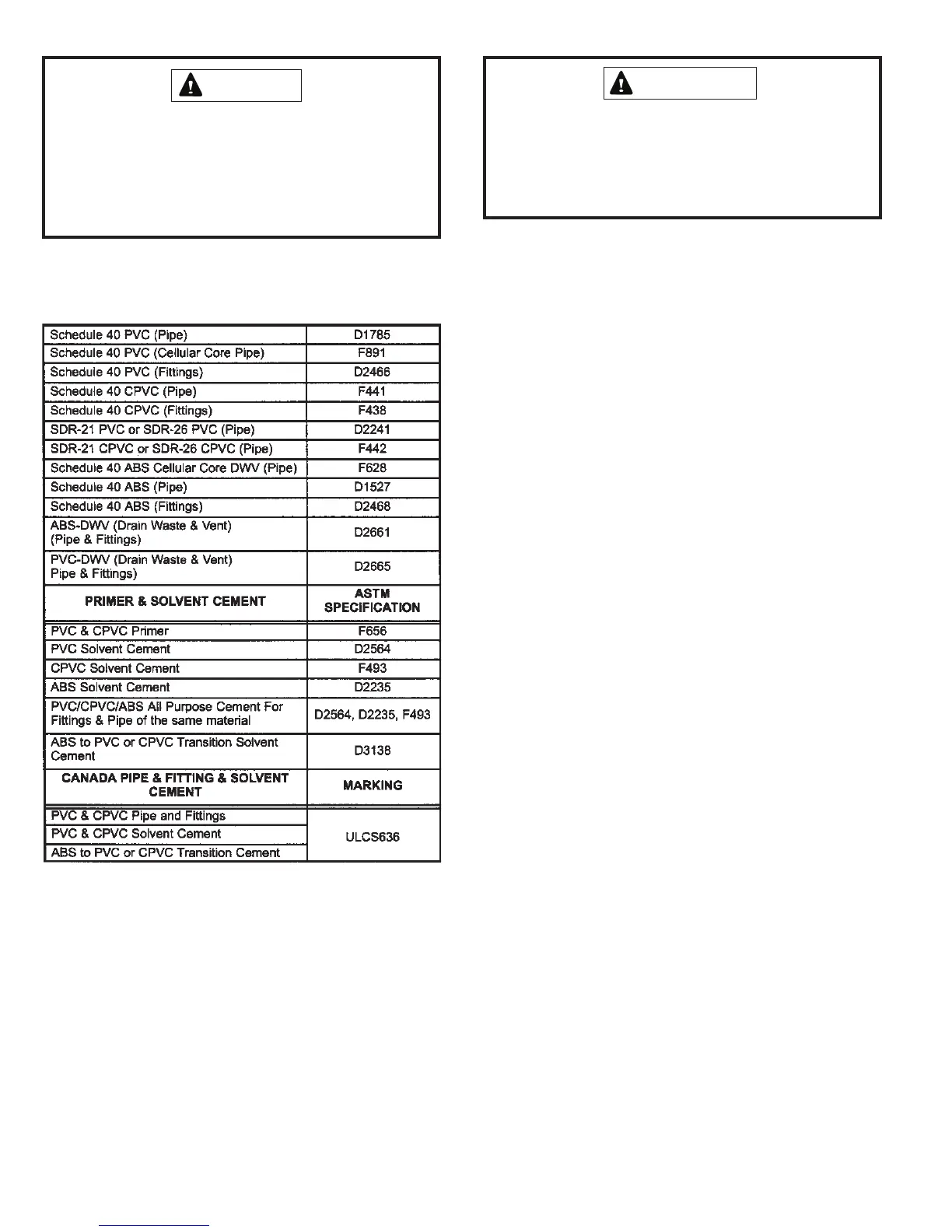 materials. Use transition solvent cement when bonding ABS