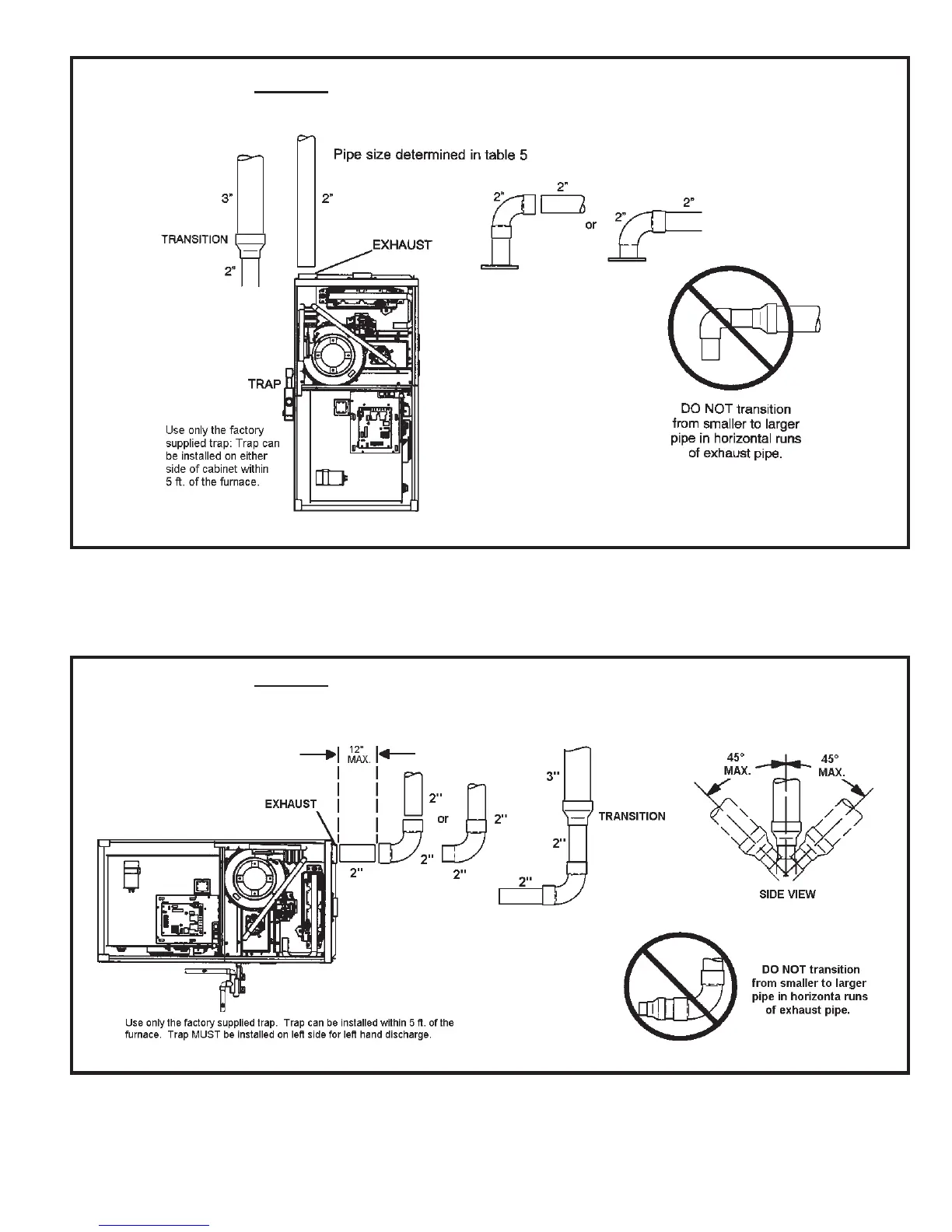 TYPICAL EXHAUST PIPE CONNECTIONS AND CONDENSATE TRAP INSTALLATION