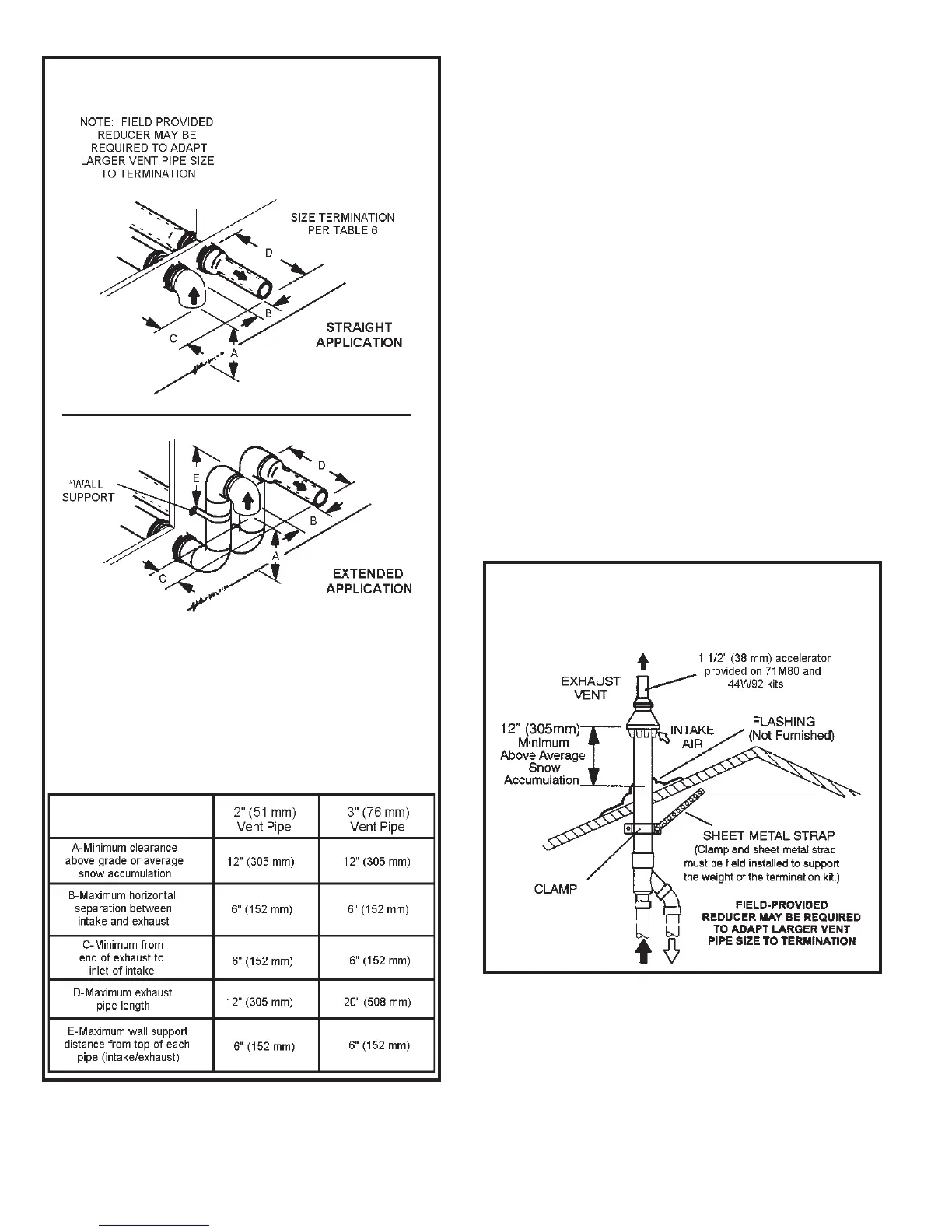 7. If intake and exhaust piping must be run up a side wall