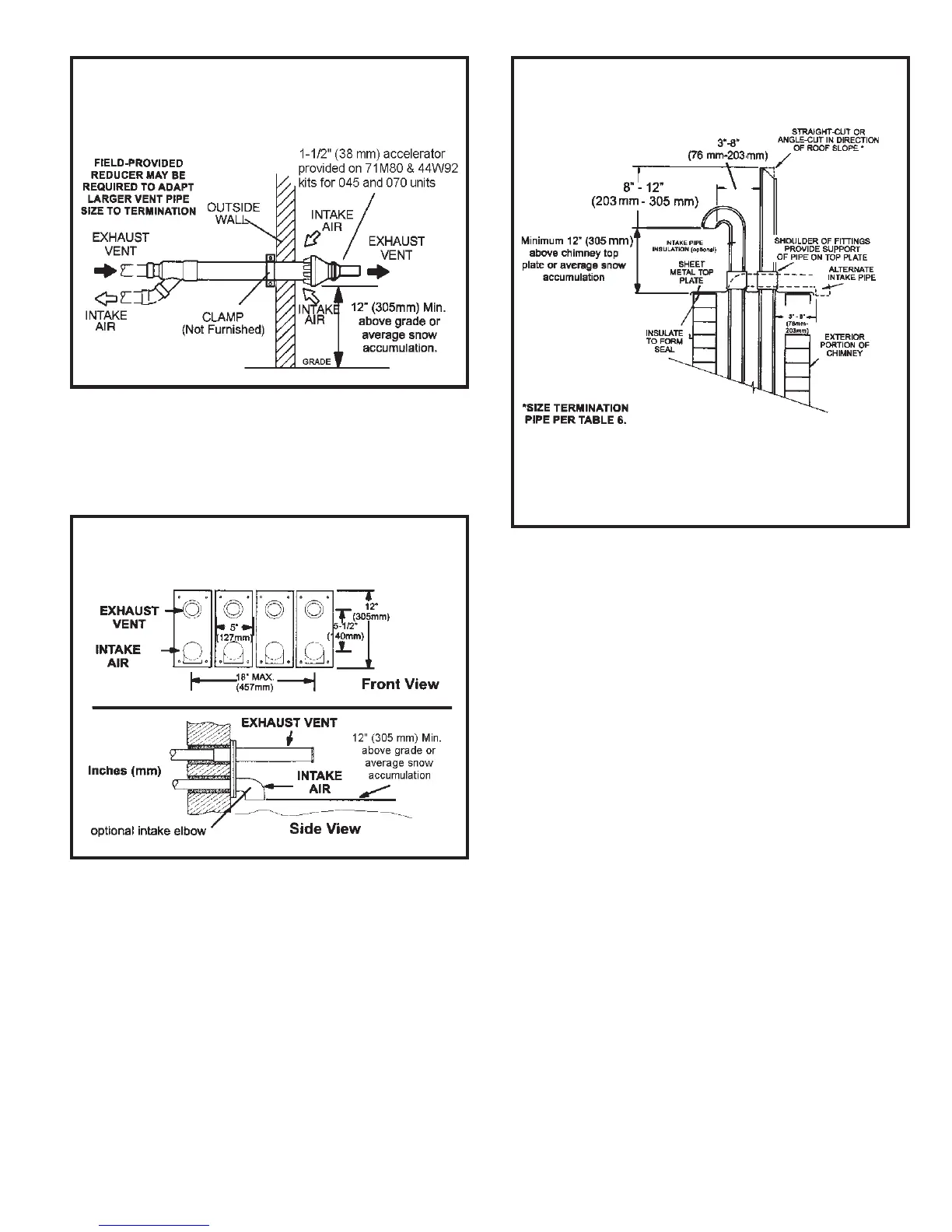 1. Exhaust piping must terminate straight out or up as