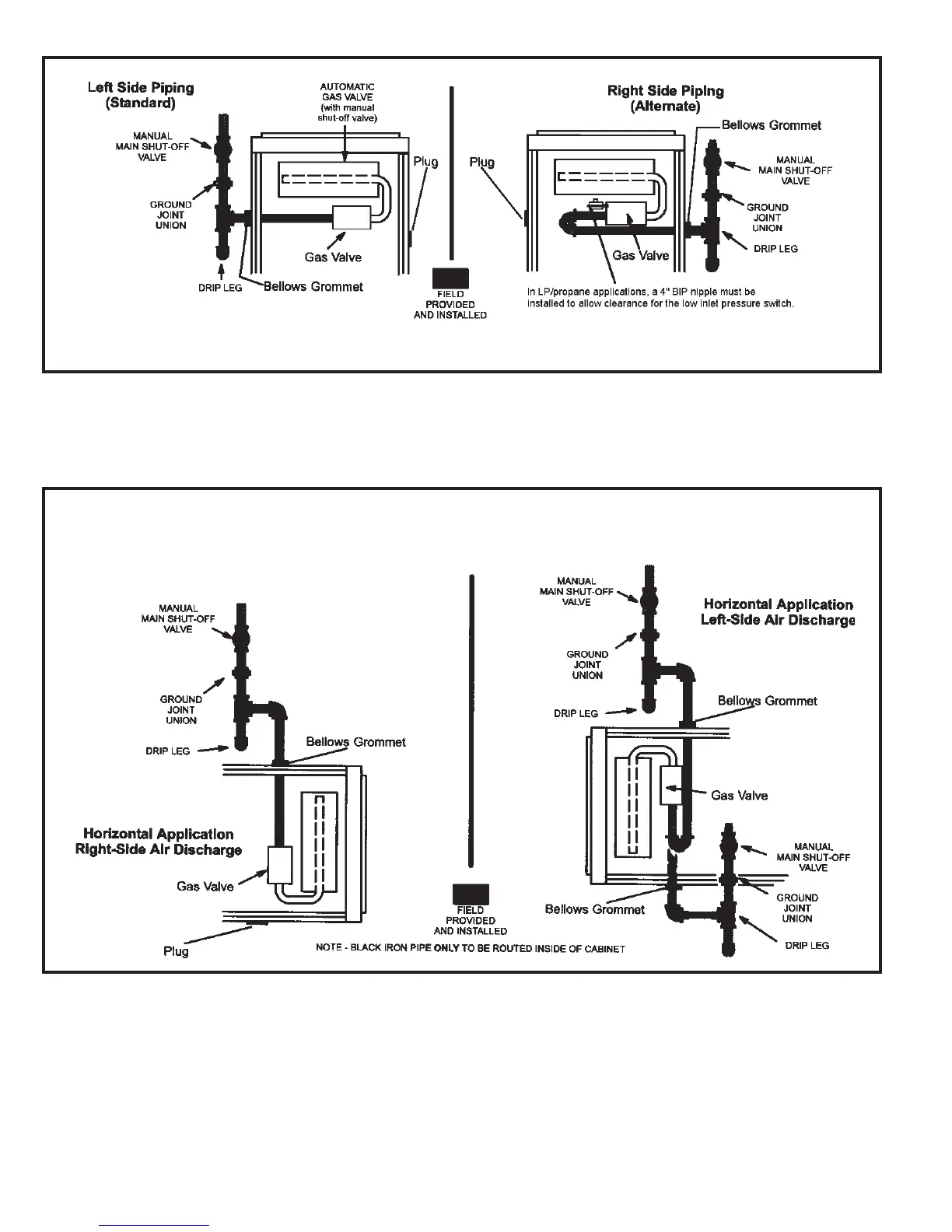 NOTE: BLACK IRON PIPE ONLY TO BE ROUTED INSIDE OF CABINET