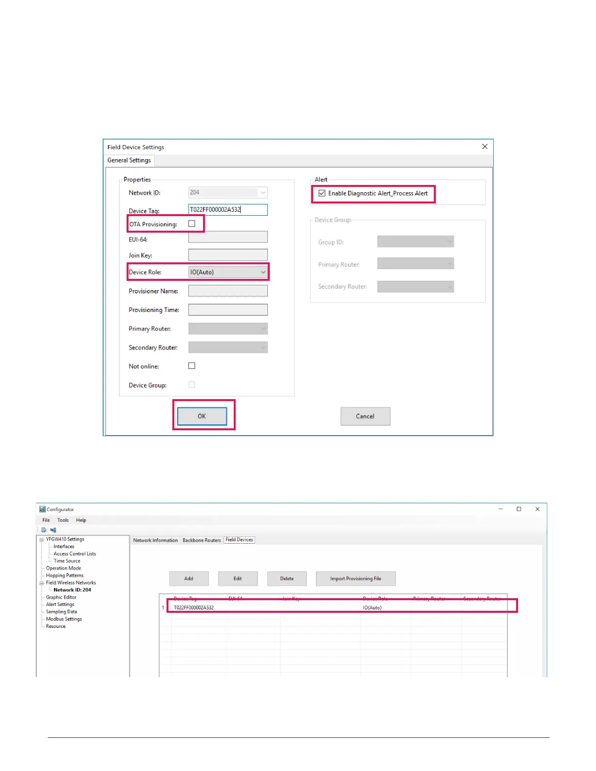 • The “OTA Provisioning” check box is selected (for both OTA and IR Provisioning methods)
