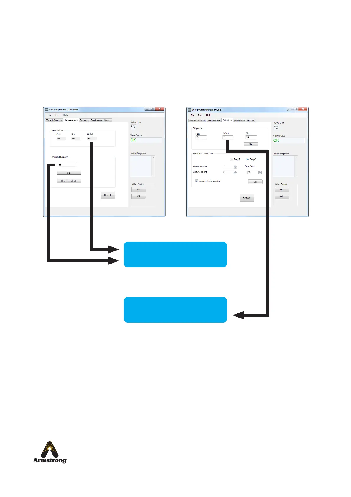 The setpoint is the required outlet water temperature. The values in the Setpoints tab control the range in