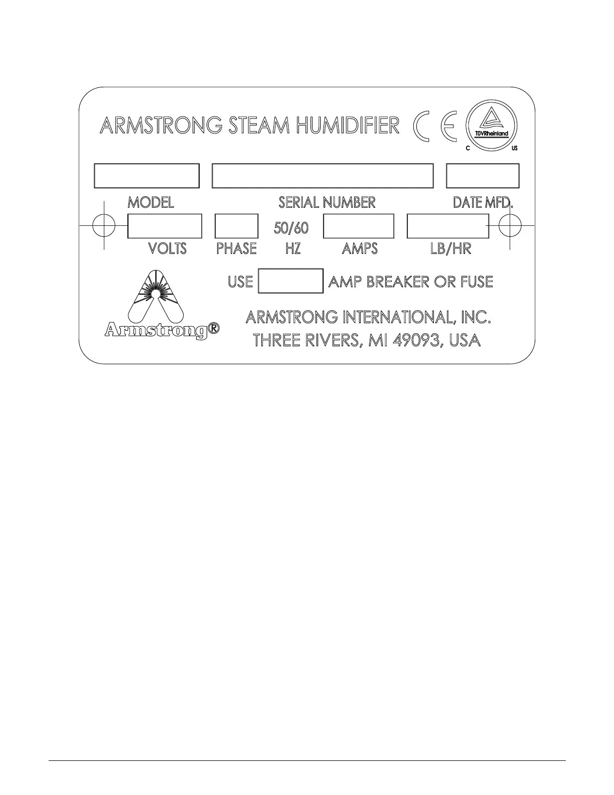 9. Steam Output: steam output of the humidifier in lbs/h (kg/h)