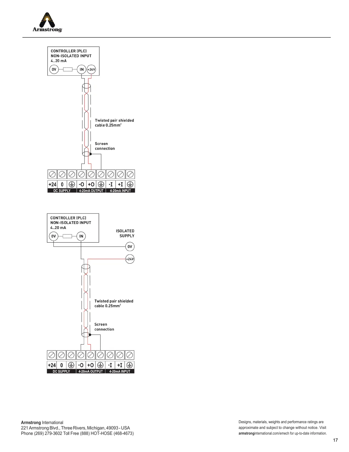 Controller with non-isolated 4-20mA loop input using the 24Vdc