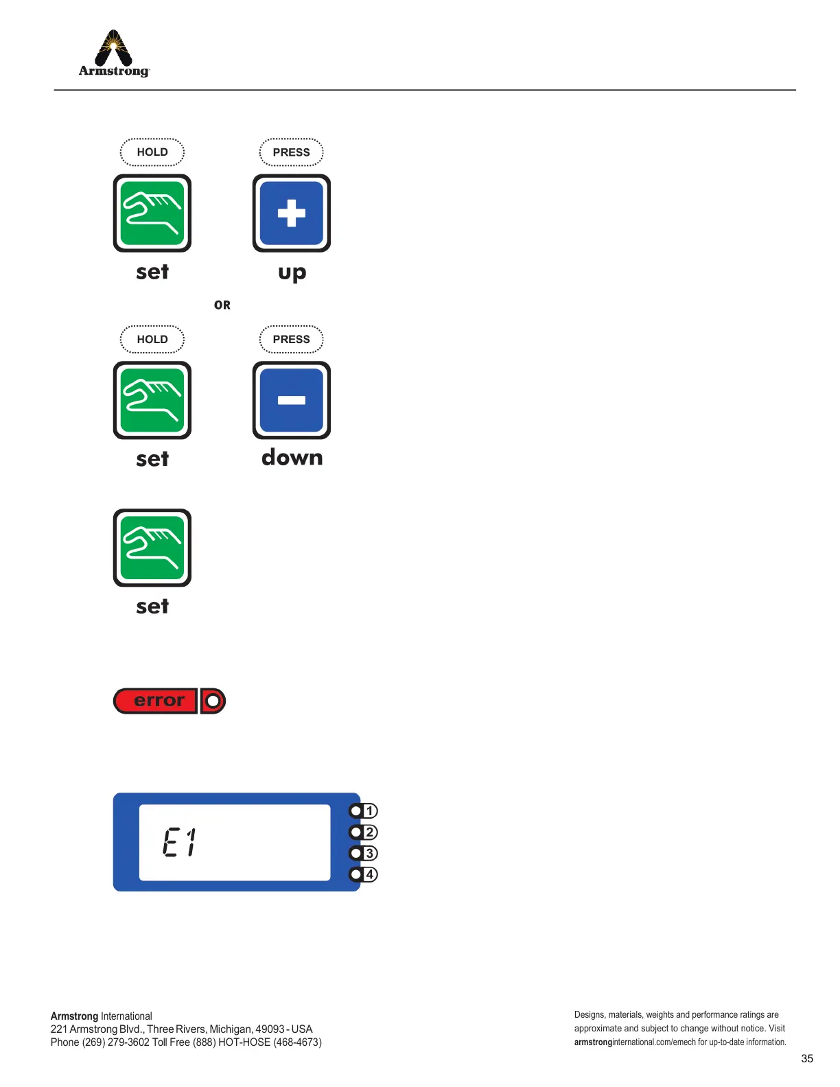 down (-) the set point of each controller type can be increased or