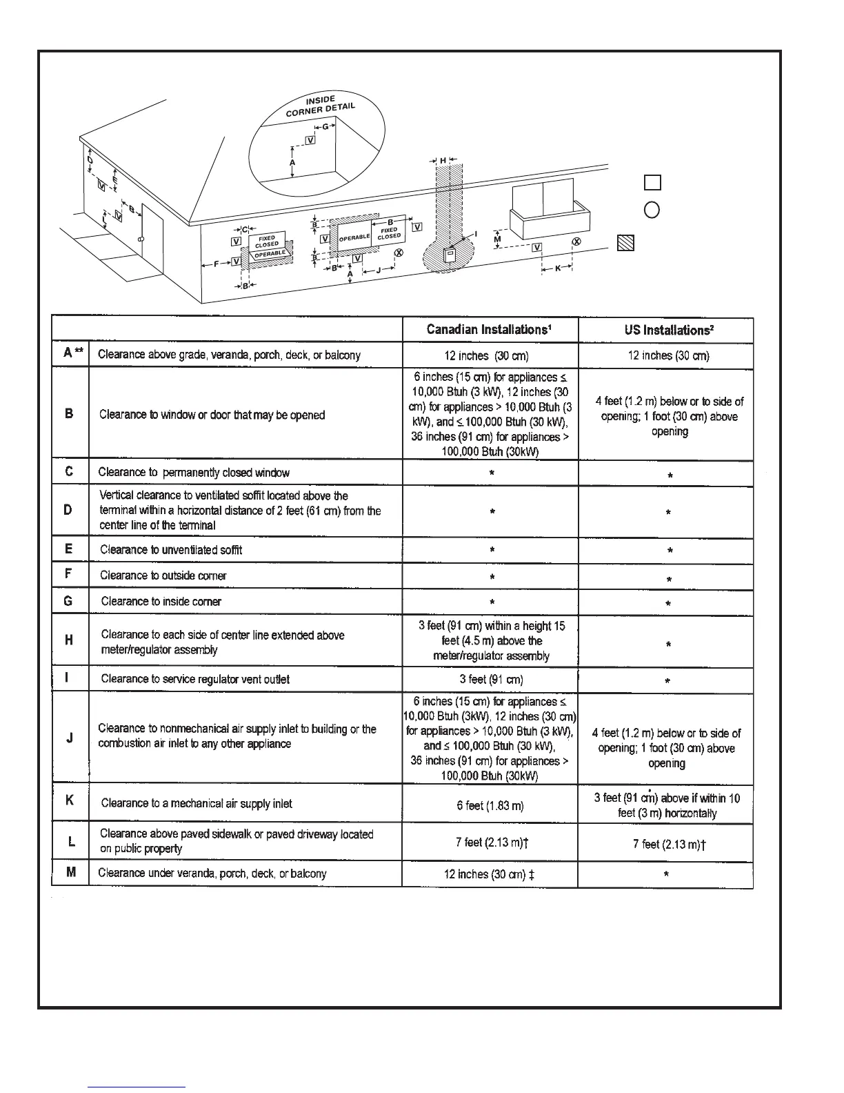 * For clearances not specified in ANSI Z223.1/NFPA 54 or CSA B149.1,
