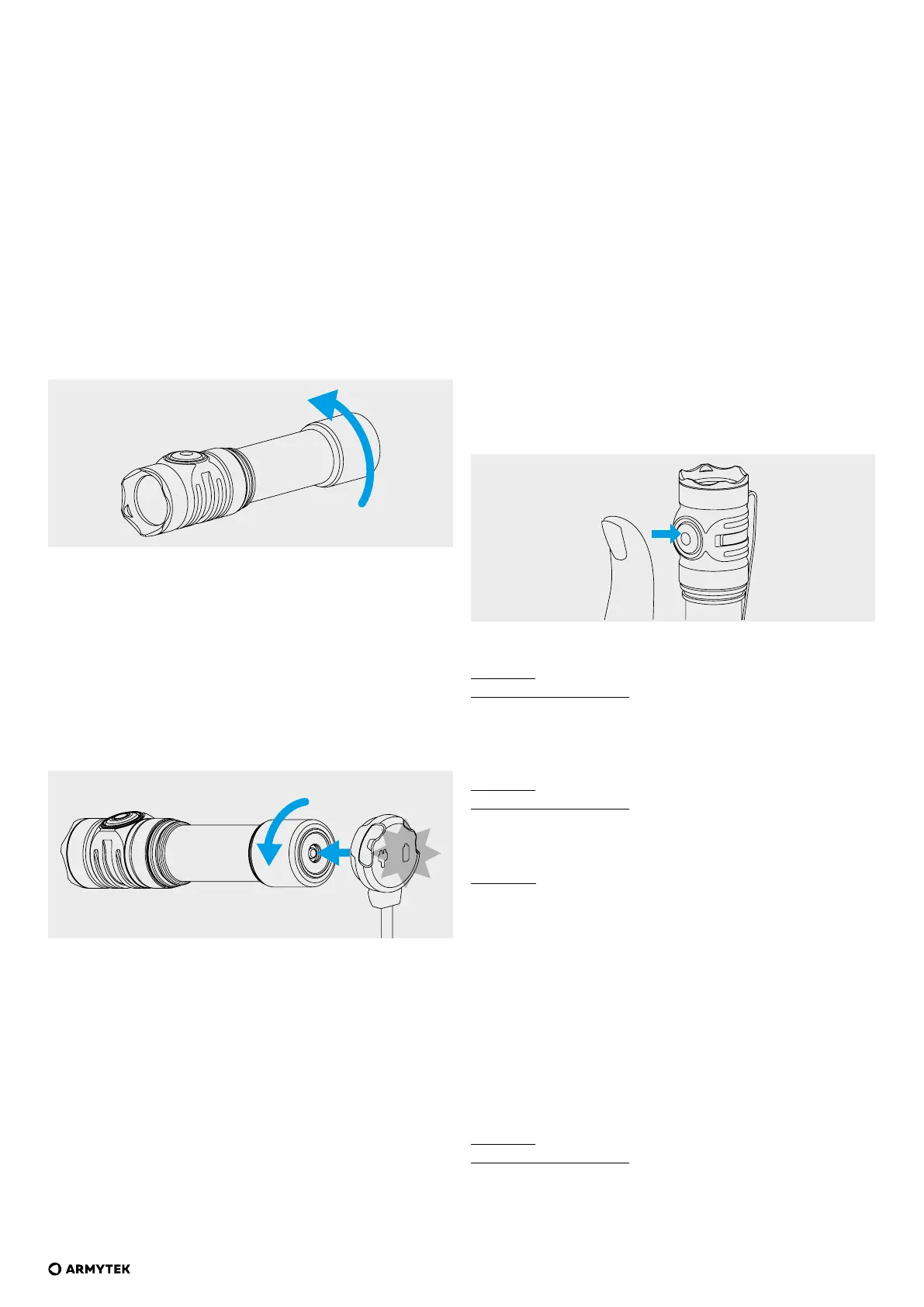 wyłączonej latarki o 1/4, naciśnij przycisk i trzymając wciśnięty, zakręć