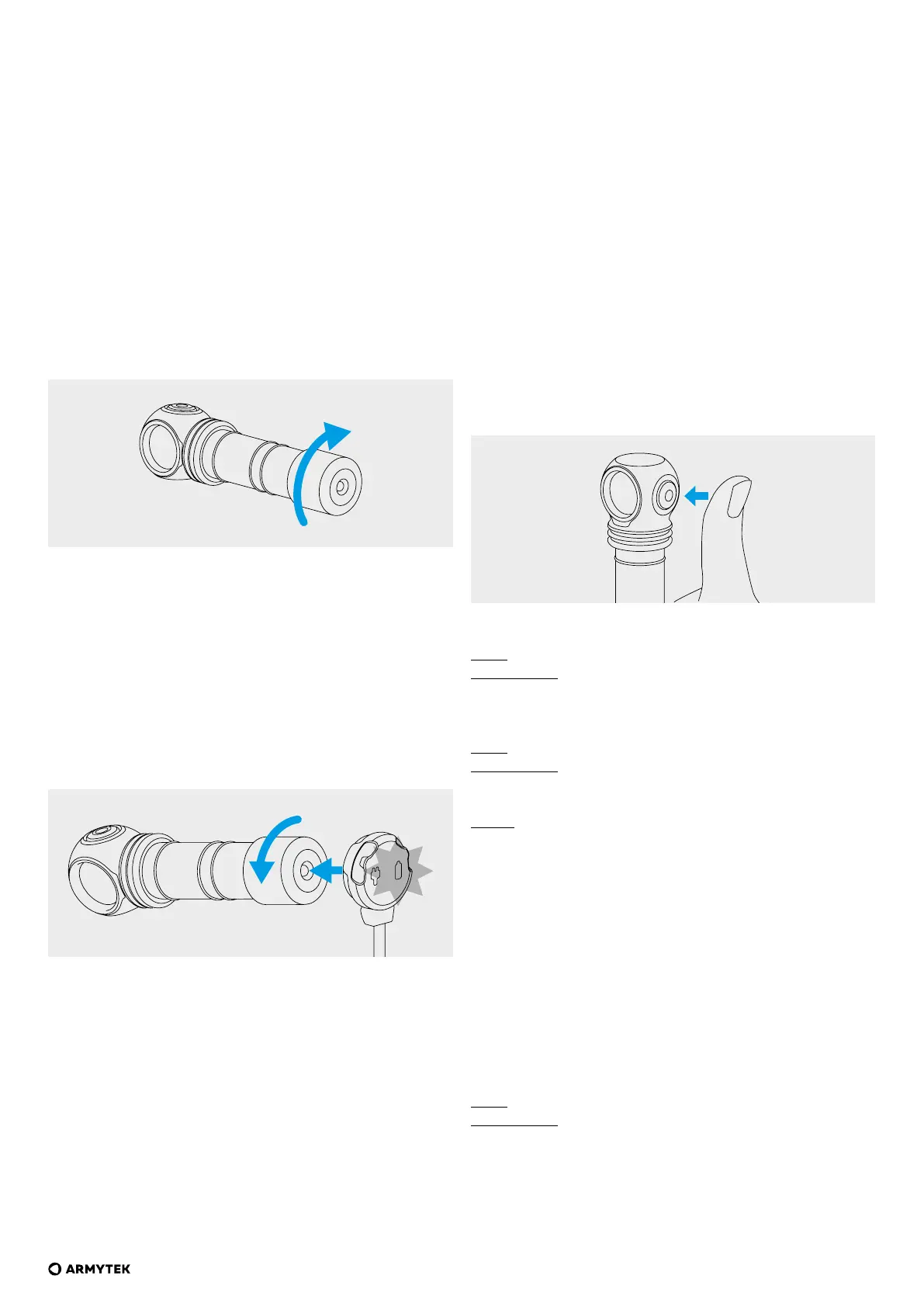 To switch between types of operation unscrew the tailcap to 1/4 while
