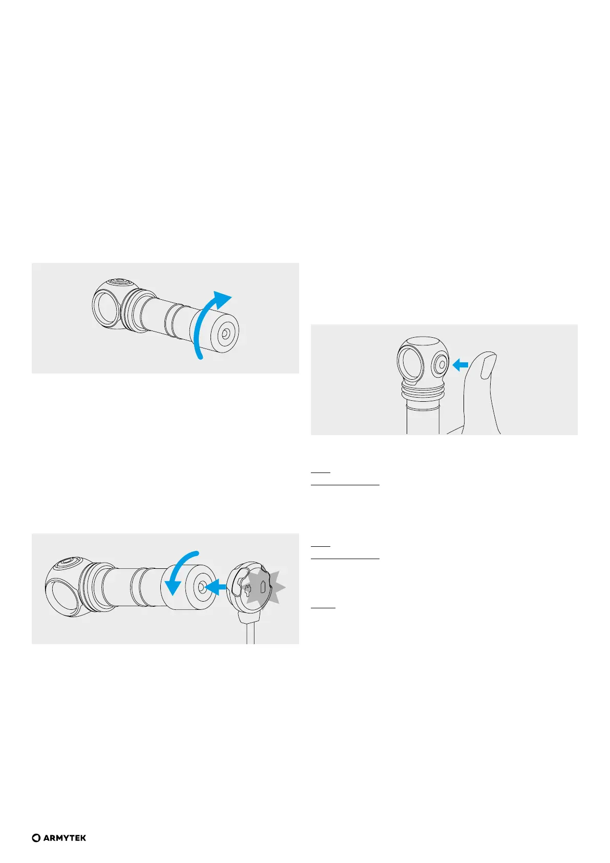 Dévisser le couvercle arrière de la lampe à 1/4 et connectez le chargeur