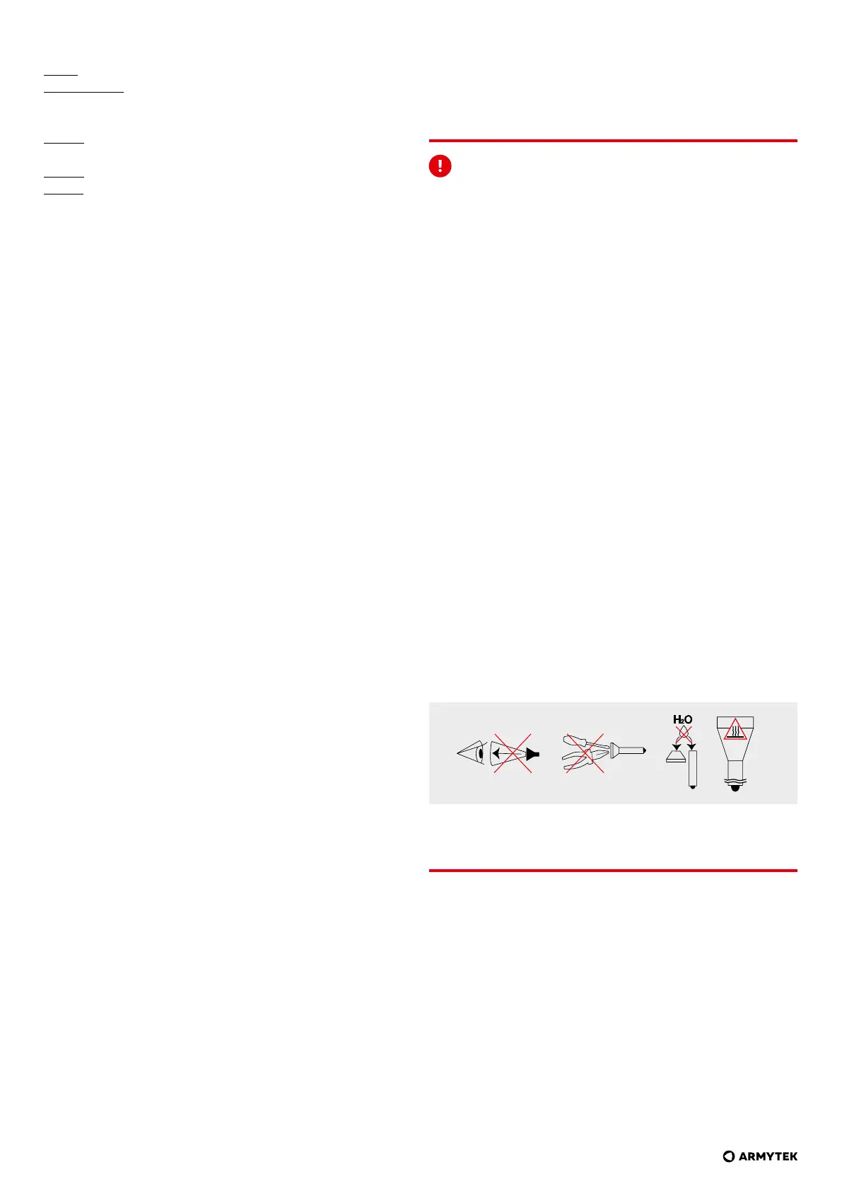 attention as very bright light might heat objects and cause fire. It is