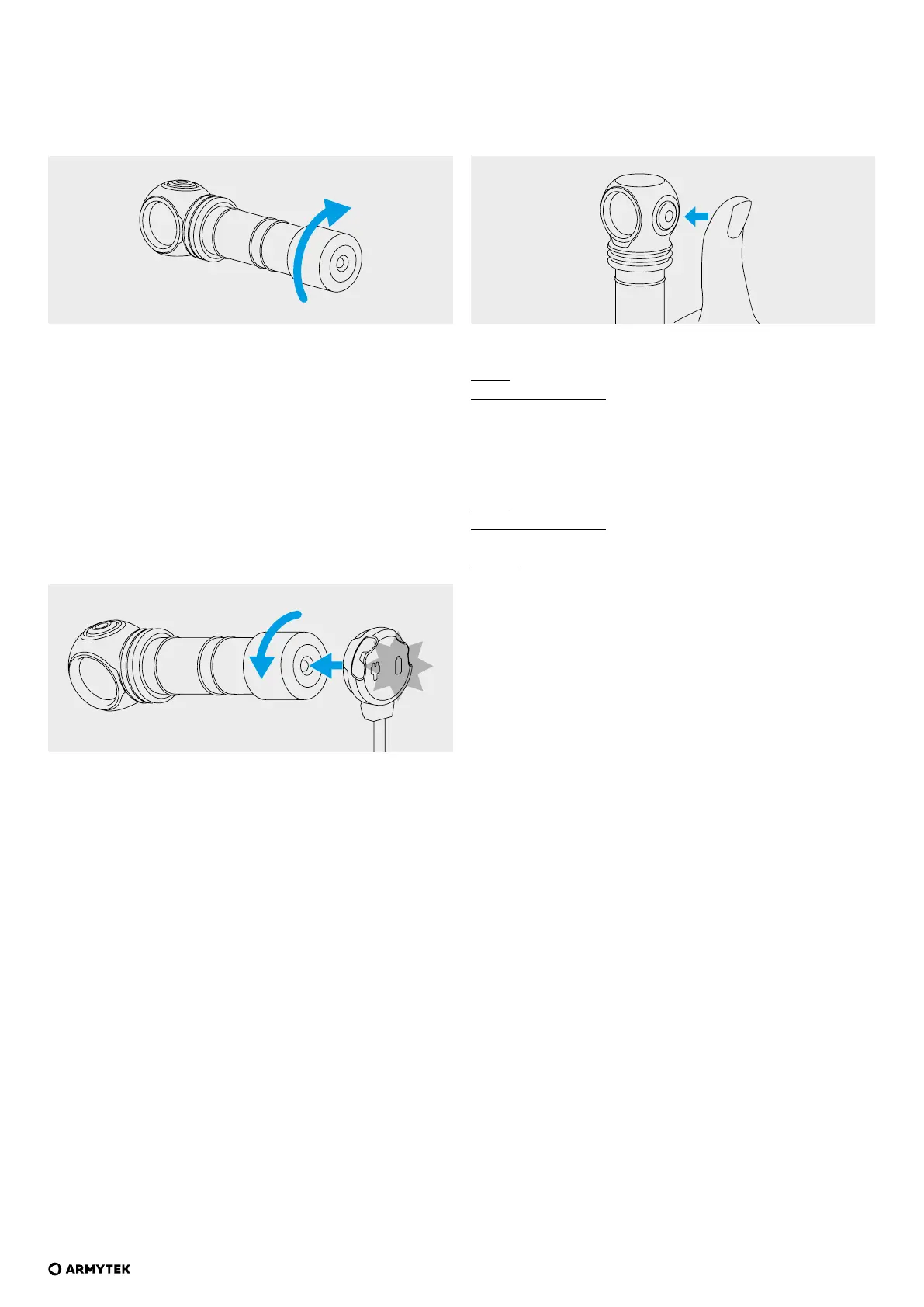 • Красный мигающий — открутите заднюю крышку фонаря на 1/4