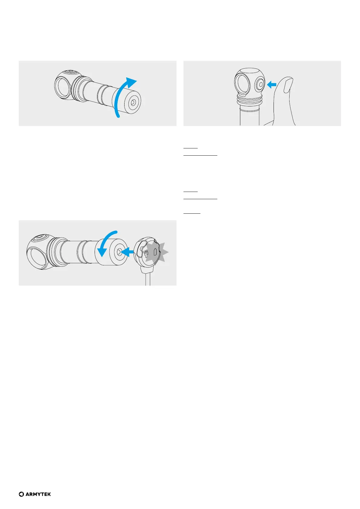 • Red blinking — unscrew the tailcap to 1/4 for charging.