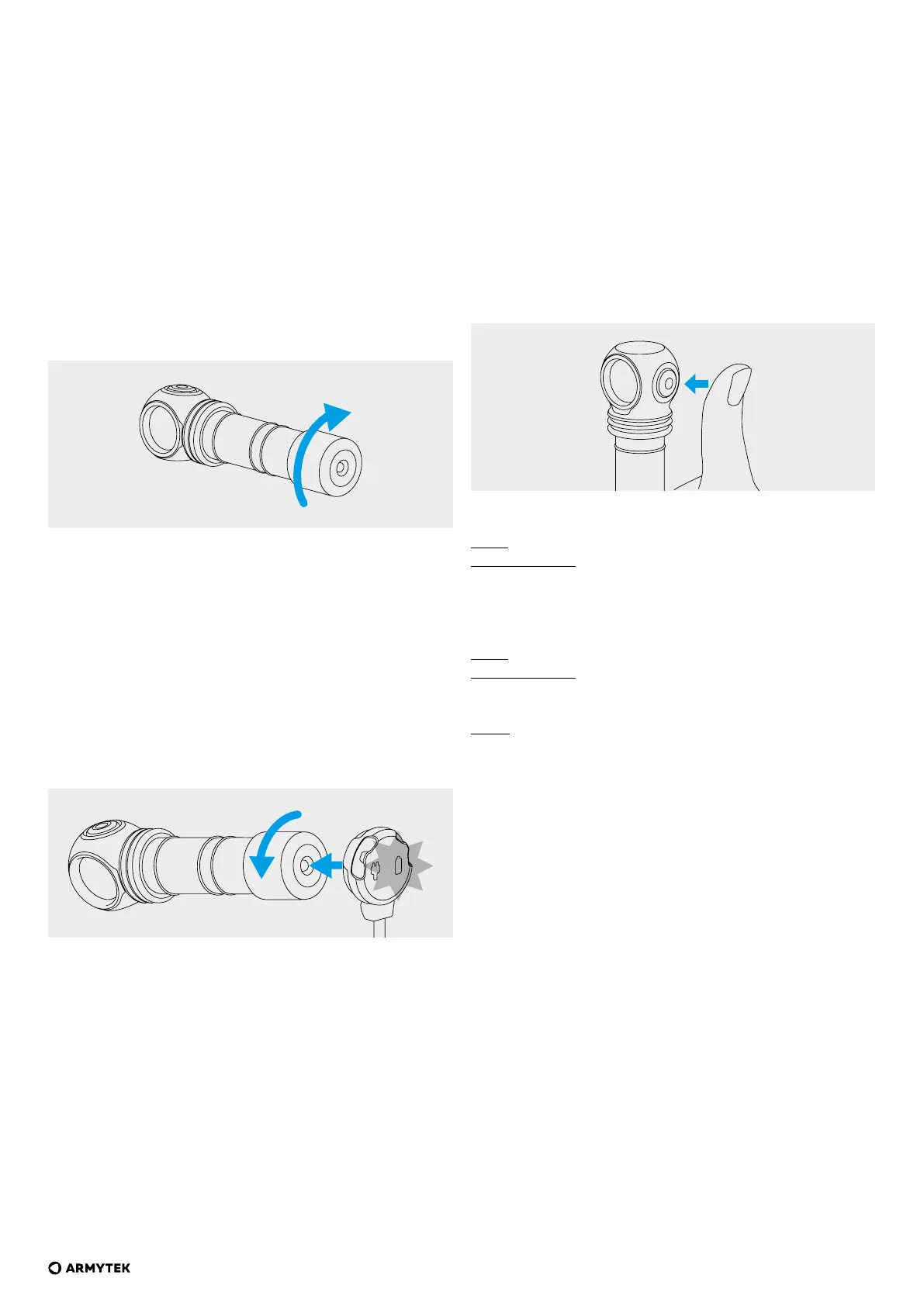 • Blinkande rött — skruva loss ficklampans bakstycke med 1/4 för att