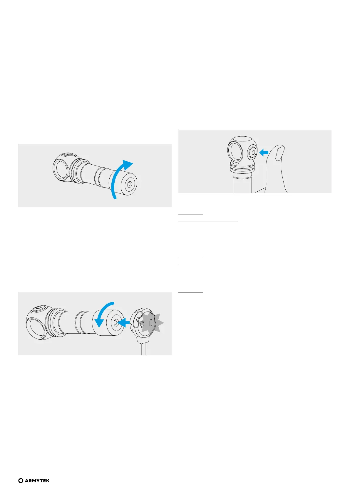 Przygotowanie do pracy: Zakręć tylną zakrętkę latarki do oporu.