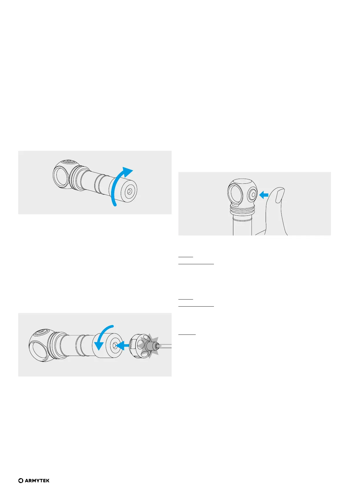 Schrauben Sie die hintere Abdeckung der Taschenlampe um 1/4 ab