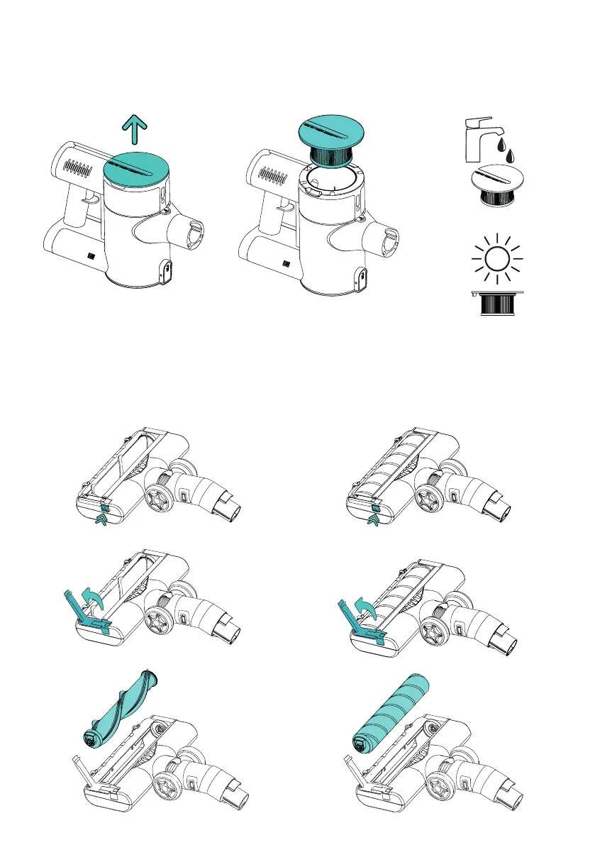 • Remove the Hepa Filter assembly located on the body by pulling