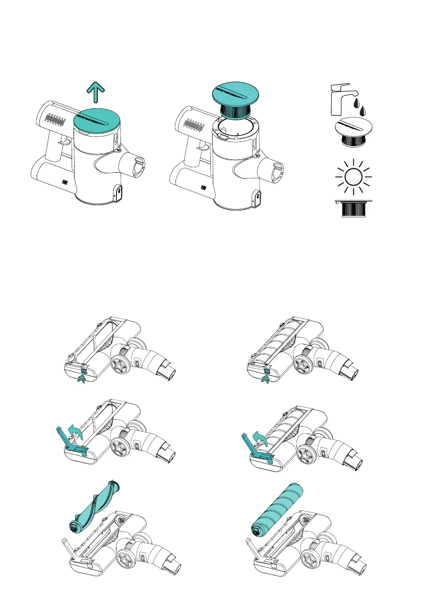 oben ziehen. Sie können den Hepa-Filter waschen, aber stellen Sie