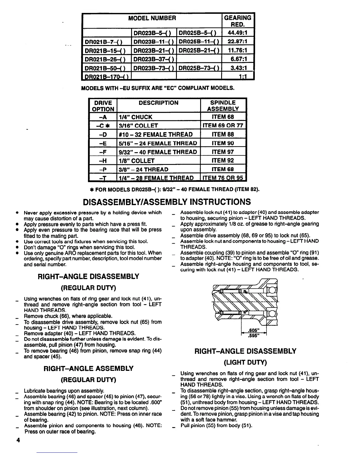 Use only genuine ARO replacement parts for this tool. When