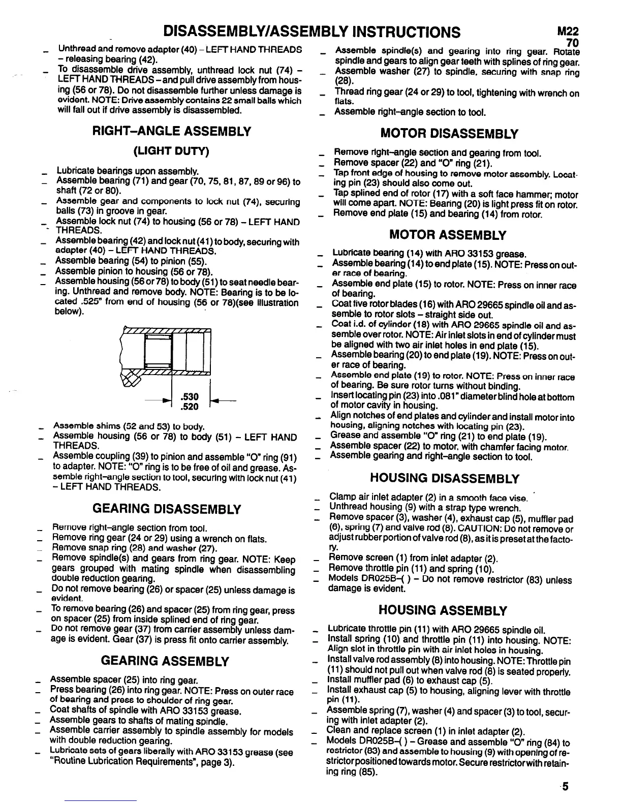 Lubricate sets of gears liberally with ARO 33153 grease (see