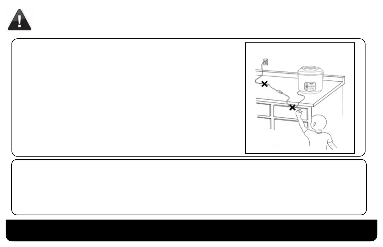 b. The longer cord should be arranged so that it will not drape over the counter top