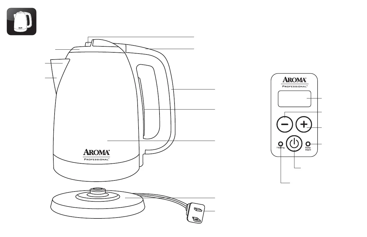 Aroma AWK-299SD - PARTS IDENTIFICATION; Kettle Components Overview; Digital Control Panel Explained