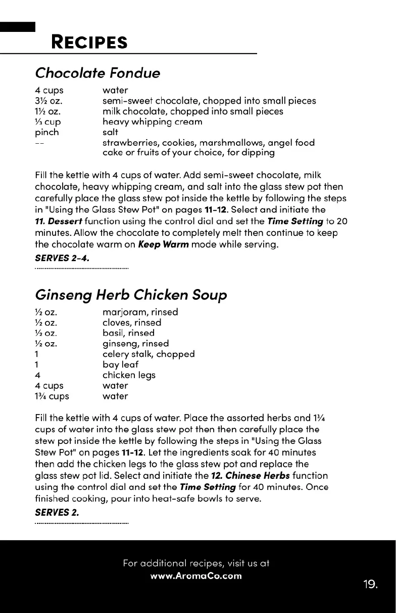Aroma AWK-701 - Recipes