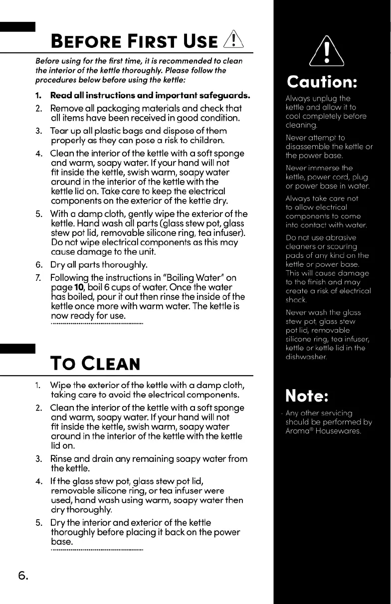Aroma AWK-701 - Before First Use; Cleaning Instructions
