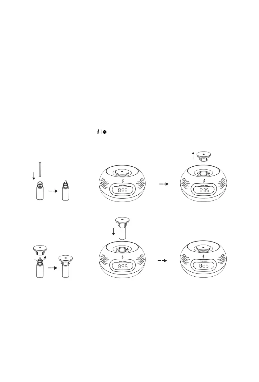 • Ligue o produto usando o botão e depois prima para se certicar de que a névoa do difusor