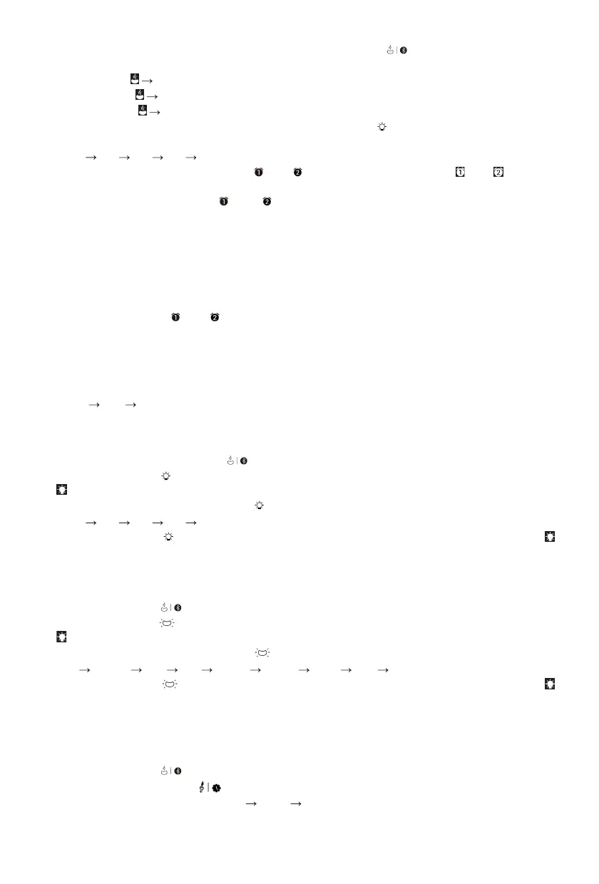 • Einstellung des Wecker-Lichteekts: Drücken Sie die Taste mehrmals, um die Helligkeit des