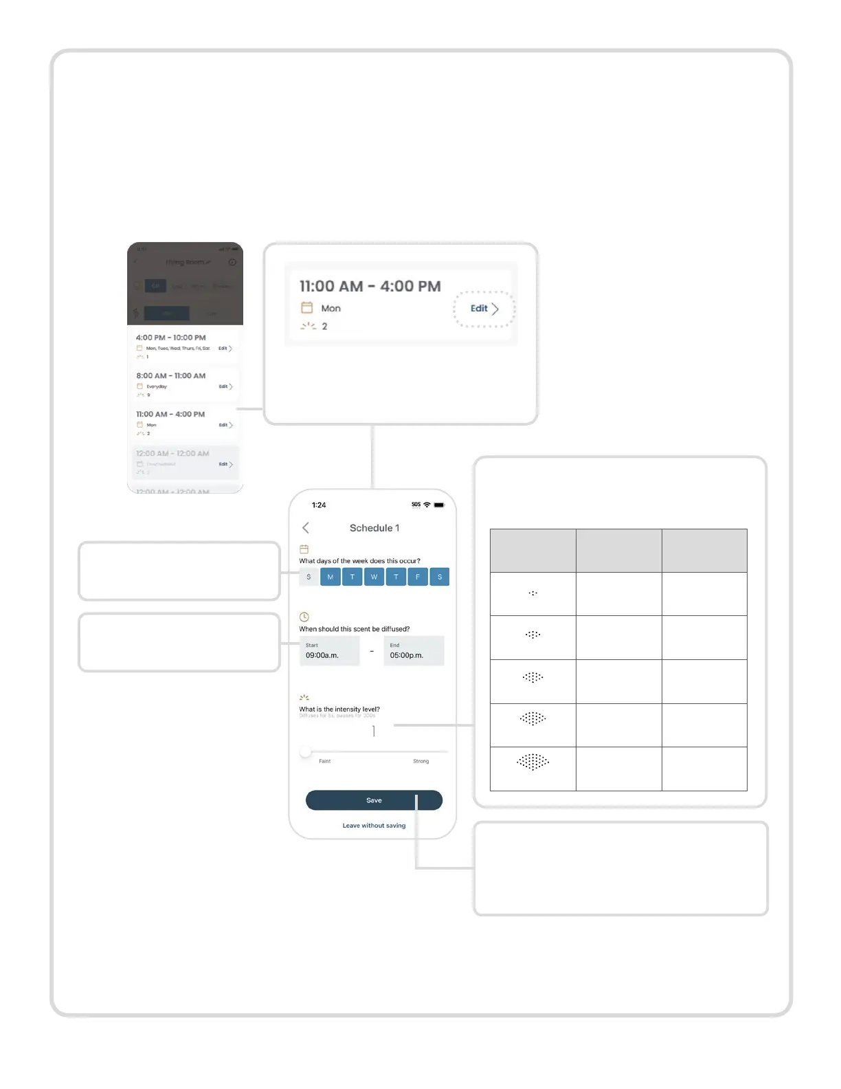Below the diffuser’s On/Off button, you’ll see five available schedules. The first is set