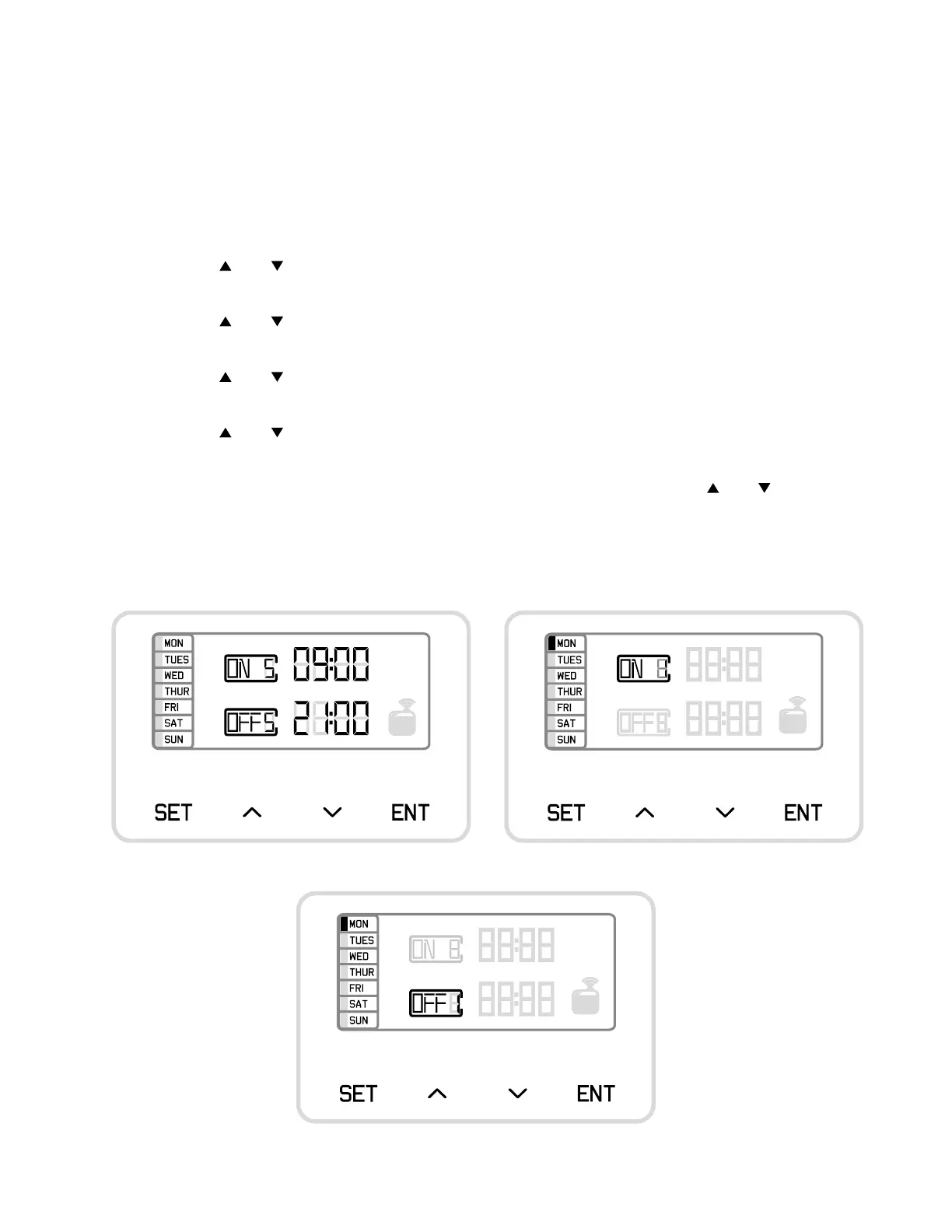 • Press or button to adjust the OFF hours, then press ENT to move to the next