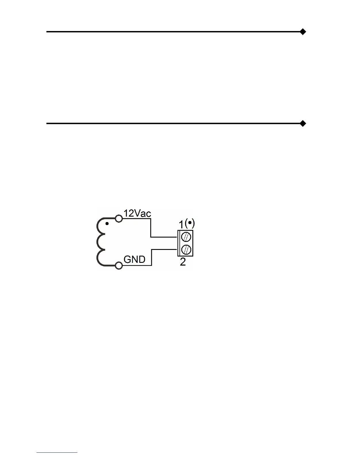¾ use an isolation transformer with an isolated single-phase output (SELV) comprised in the range 12-24Vac with