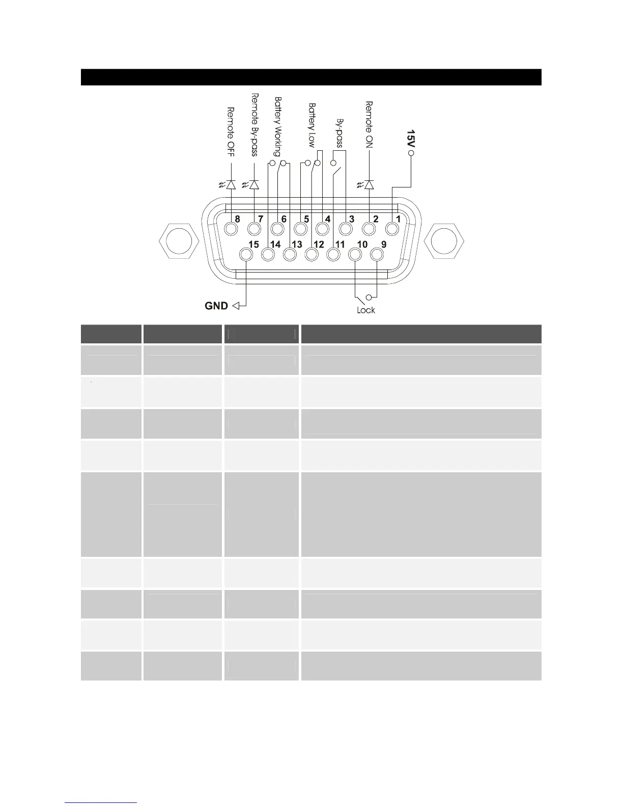 When pin 8 is connected to pin 15, the UPS is powered off