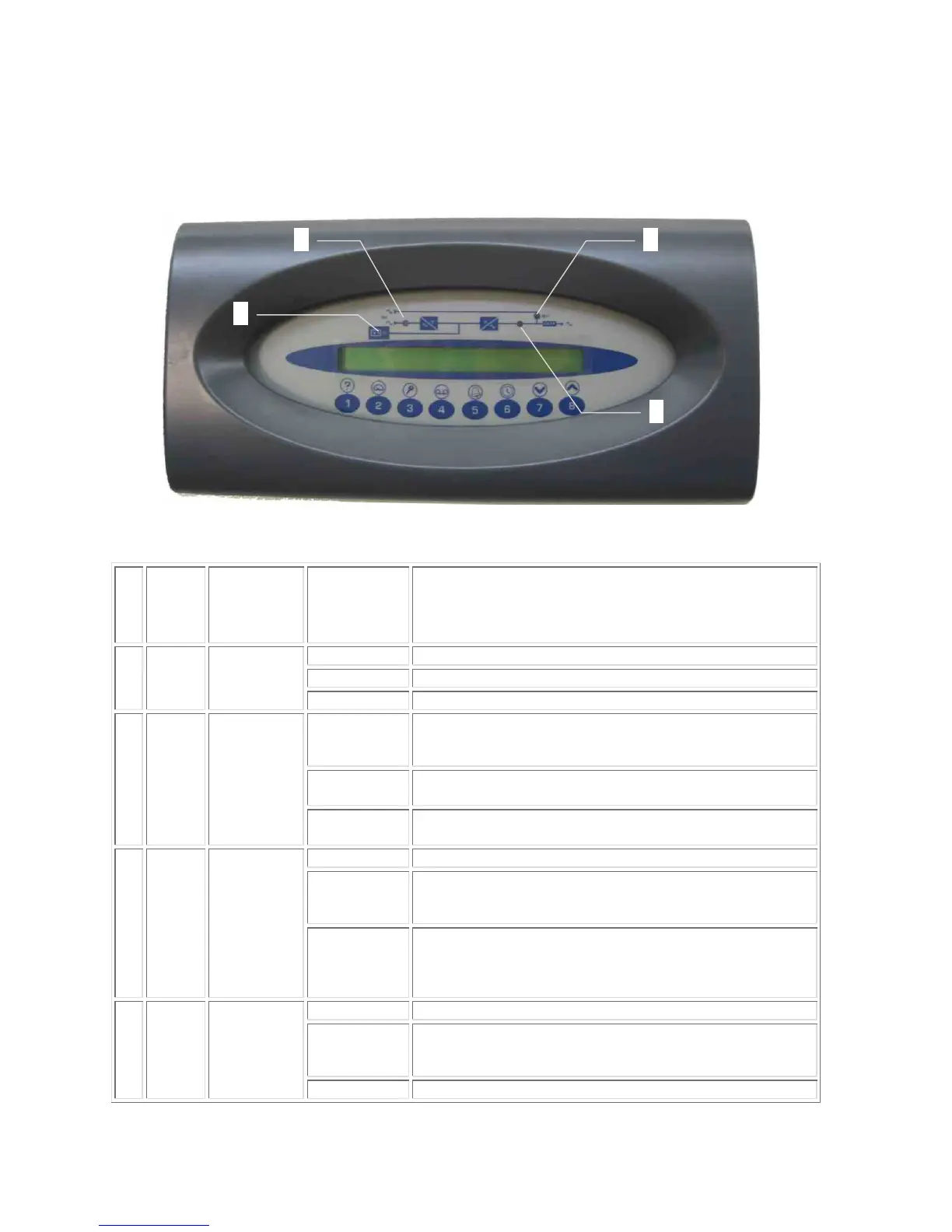 (LCD) with two rows of 40 characters and four LEDs with three operating states: on steady, on flashing, off.