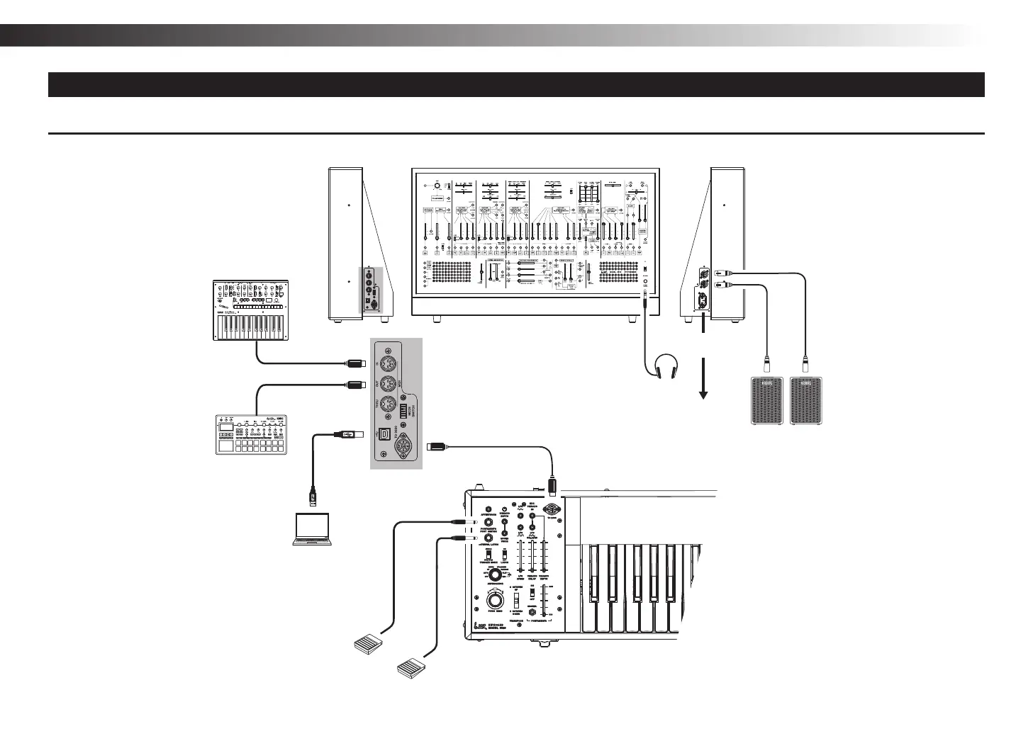L’illustration suivante montre un exemple typique de connexions. Branchez le matériel répondant à vos besoins.