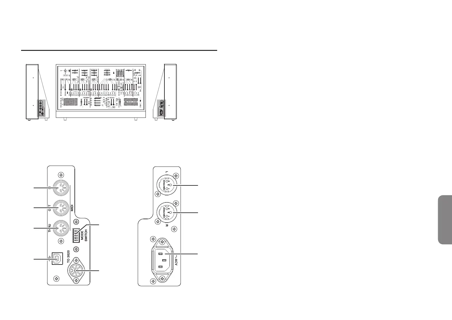 Panel lateral izquierdo (MIDI, USB, MODE SWITCH)
