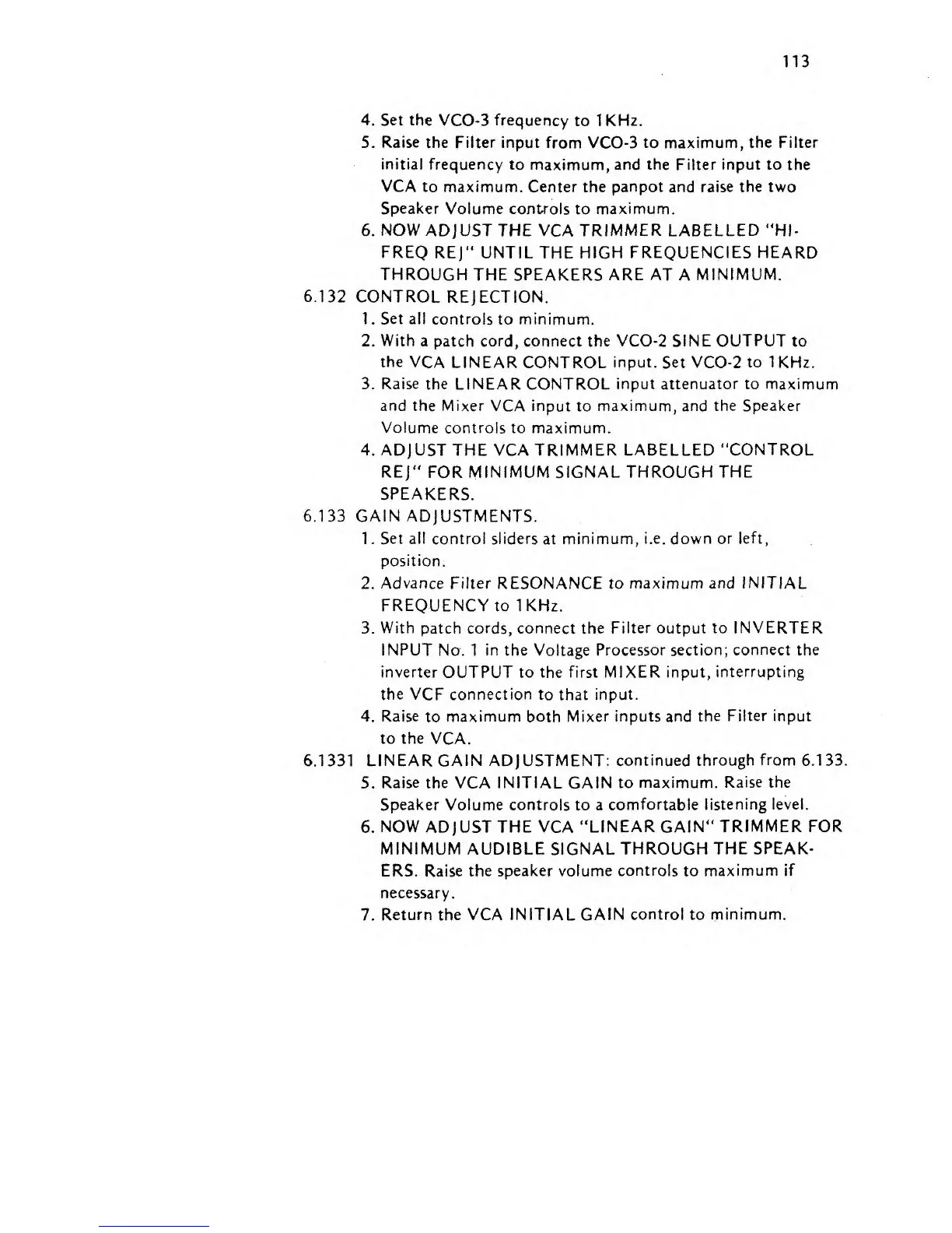 ARP 2600 - 1 V;Octave Calibration for VCF; Voltage Controlled Amplifier (VCA) Adjustments; High Frequency Rejection Adjustment